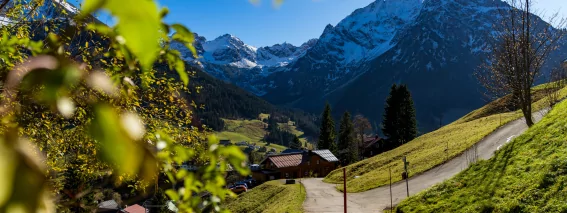 Eine mittlere bis leichte Wanderung führt Sie vom Walmendingerhorn über die Stutz- und Bühlalpe zum Maisäss, Hofstatt, Moos und zurück nach Mittelberg.